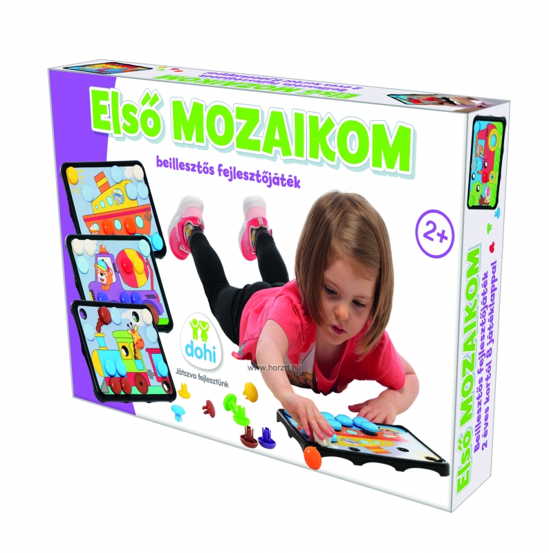 Ez a készségfejlesztő játék számos területen fejleszti a gyermekeket. - Vizuális figyelem és megfigyelőképesség: A gyerekeknek össze kell hasonlítaniuk a mintalapokat és a színes mozaikgombokat, majd pontosan elhelyezni azokat. Ez segíti a részletek észrevételét és a fókuszált figyelem kialakítását. - Szín- és formafelismerés: A különböző színű gombok párosítása az óvodai jelekkel (pl. traktor, betonkeverő, vonat, hajó) játékos módon fejleszti a színazonosítást és az alakzatok megkülönböztetését. - Finommotorika és szem-kéz koordináció: A mozaikgombok megfogása és pontos illesztése erősíti az ujjak izomzatát, ügyesíti a kéz mozgását, ami elengedhetetlen például az írás előkészítéshez. - Logikai gondolkodás és problémamegoldás: A gyerekek felismerik, hová illik a megfelelő színű gomb, és próbálják „kiegészíteni” a mintát, ami erősíti az ok-okozati összefüggések felismerését. - Kitartás és feladattartás: A feladatok befejezésére való törekvés, a koncentrált figyelem fenntartása fejleszti a gyermekek feladattudatát és türelmét. - Önbizalom és sikerélmény: A jól végrehajtott feladat azonnali vizuális megerősítést ad: „Sikerült, kész a kép!” – ez növeli az önbizalmat és motivációt. |