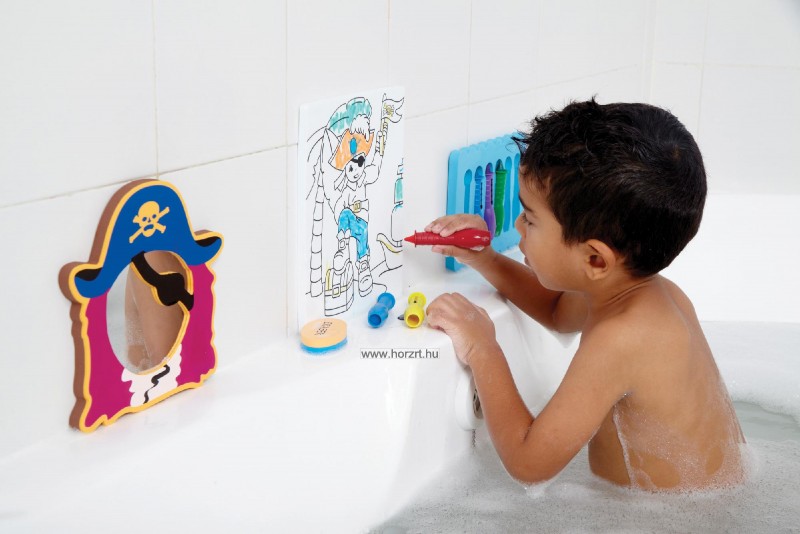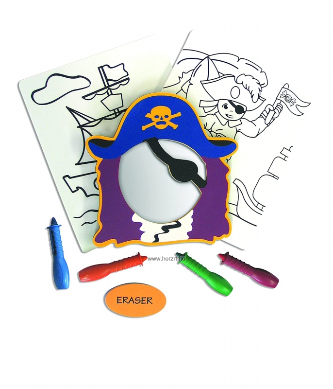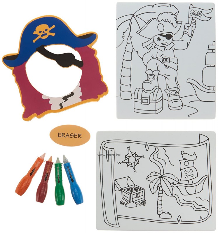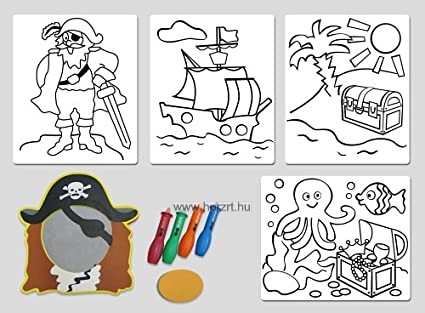 A polifoam színező nem ázik el, lemosható. A gyermekek kézügyessége és kreativitása fejlődik, ezen kívül a csomag tartalmaz egy tükröt is amelynek kalóz mintázatú a kerete, így a gyermek igazi kis kalóznak érezheti magát.
