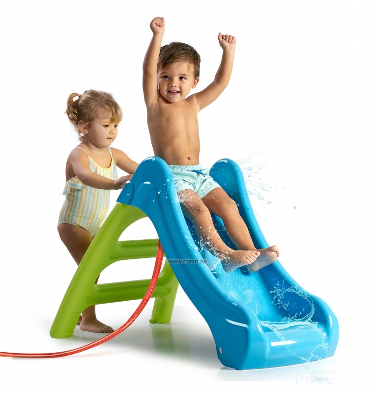 Víztömlő csatlakoztatásával vízicsúszdává alakítható.