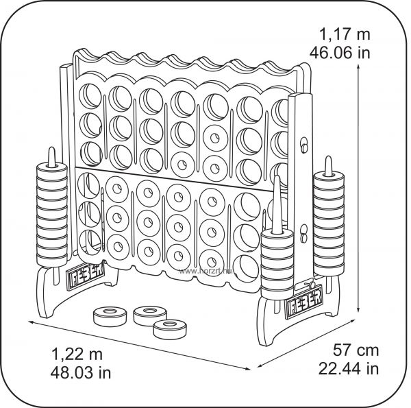 Ki ne játszott volna Amőba játékkal gyermekkorában, vagy akár felnőttkorában? Ezt most újra megtehetjük, de most XL-es változatban. A feladat egyszerű, 4 azonos színű karikát kell kirakni függőlegesen, vízszintesen, vagy átlóban. Igazi szabadtéri családi játékot terveztek belőle. Nem lehet elmenni mellette, hogy az ember ne akarjon rögtön játszani vele. Nem kell hozzá sok idő, egy partyt akár 5-10 perc alatt lejátszhatunk. Ha vége a játéknak, alul kétoldalt kihúzható a tartóalap, a karikák kipotyognak és a tartórudakra felfűzhetőek. Kellemes, élénk színén, jó minőségén még az időjárás sem tud kifogni. Még az innivalódat sem kell messzire vinned, hiszen pohártartóval is rendelkezik.