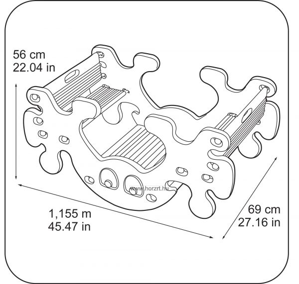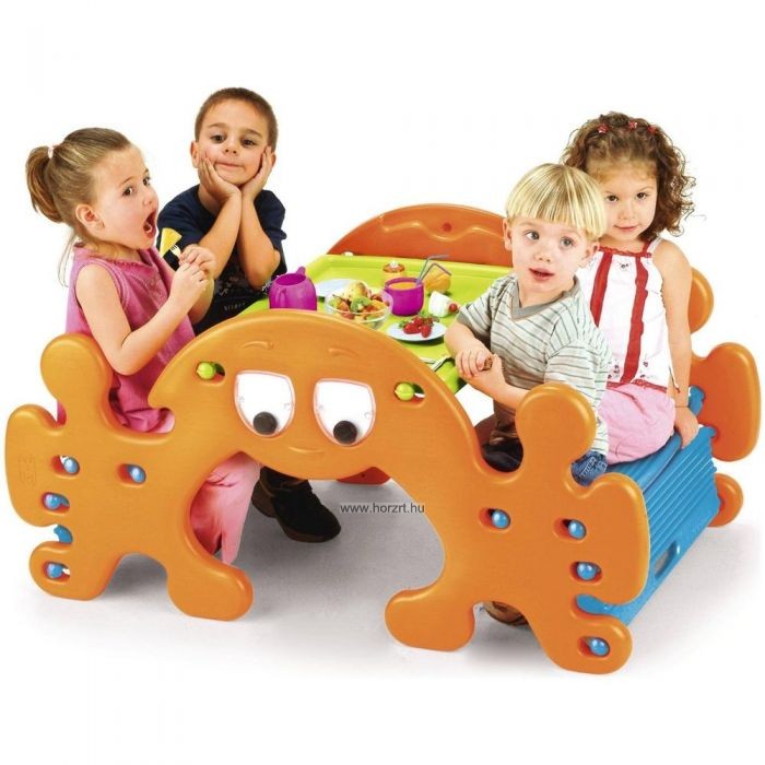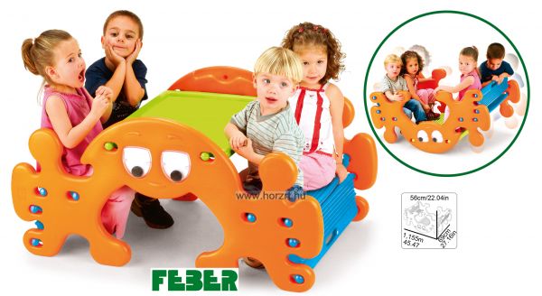 Masszív, színes műanyagból készült kétfunkciós mozgásfejlesztő eszköz. Használható asztalként paddal a délutáni uzsonna elfogyasztásához, vagy szerepjátékhoz. Megfordítva akár 4 gyermek is egyidejűleg libikókázhat. Könnyen tisztítható, kültéren és beltéren is egyaránt használható.