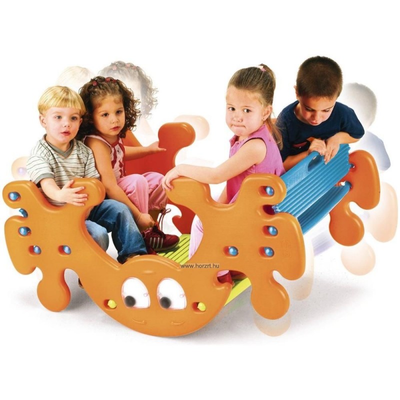Vidám, szellem formájú hintaasztal. Masszív, színes műanyagból készült kétfunkciós mozgásfejlesztő eszköz. Használható asztalként paddal a délutáni uzsonna elfogyasztásához, vagy szerepjátékhoz. Megfordítva akár 4 gyermek is egyidejűleg libikókázhat.