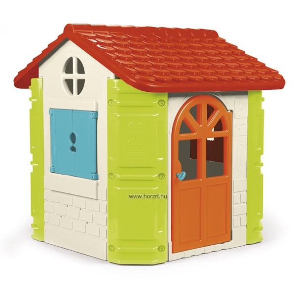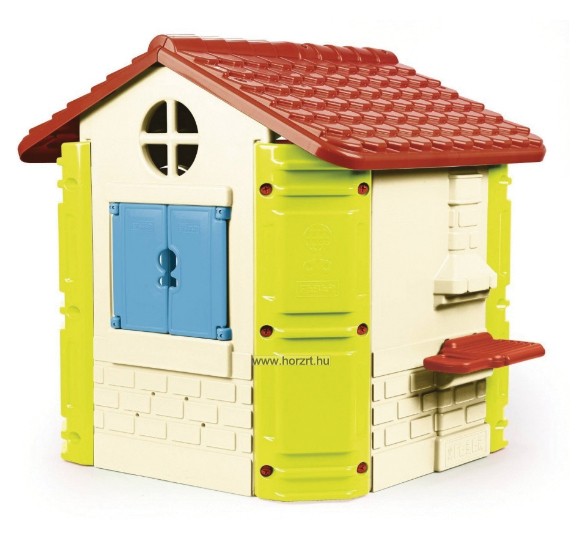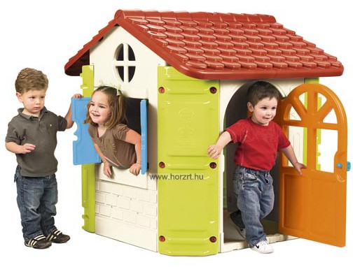 Ez a közepes méretű, masszív, színes műanyagból készült, hagyományos stílusú házikó a gyerekek kedvenc szerepjátszó eszközévé válhat. Nyitható- zárható ajtóval, ablakkal rendelkezik. Belső magassága lévén a gyerekek kényelmesen elférnek benne. A belsejében található polcok a játékok tárolására ideális, egy törhetetlen tükör pedig egyszerű mozdulattal asztallá alakítható át, így az további játéklehetőségeket rejt magában.