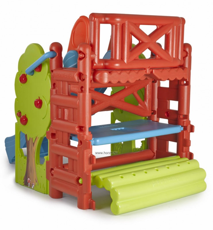 Az almafát szimbolizáló játszócentrum egy csúszdát, két különböző mászókalétrát és egy kis piknikasztalt paddal is tartalmaz.