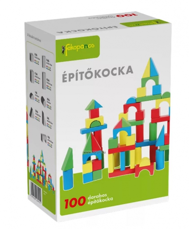 A doboz tartalma: 100 db fa építőkocka