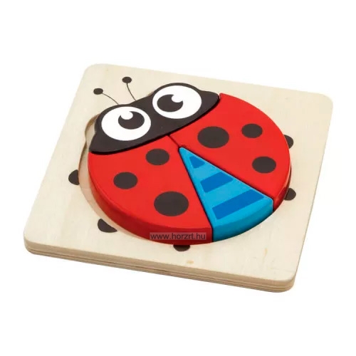 Magasított kialakítású, fából készült, katicás puzzle.
