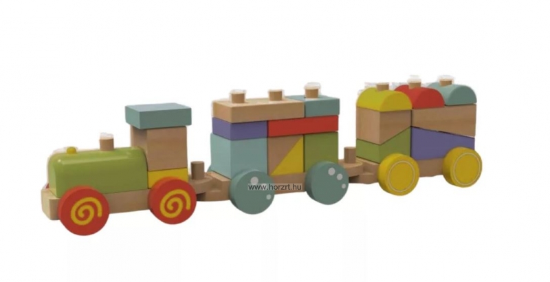Színes, fa építőjáték, amely lehetőséget biztosít a gyermekek számára, hogy saját vonatot építsenek és alakítsanak ki különböző formákat. A készlet tartalmazza a vonat elemeit, amelyeket a gyermekek összeilleszthetnek, miközben fejlesztik kreativitásukat és finommotoros készségeiket. A játék során a gyermekek megismerkedhetnek a színek, formák és számok világával, miközben szórakoztató módon tanulnak.