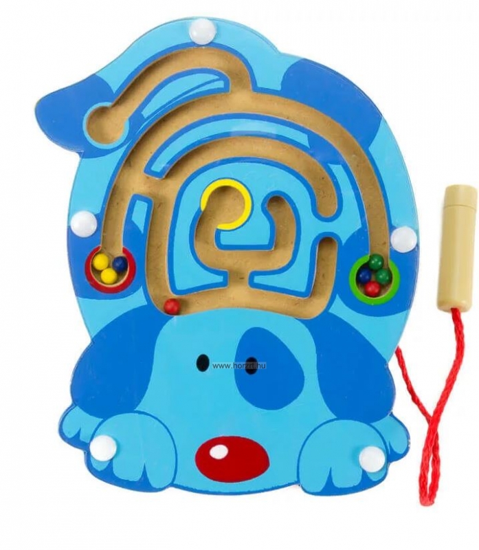 A vidám, kék színű kutyusos golyóvezető pálya egy kiváló finommotorika fejlesztő és íráselőkészítő játék.