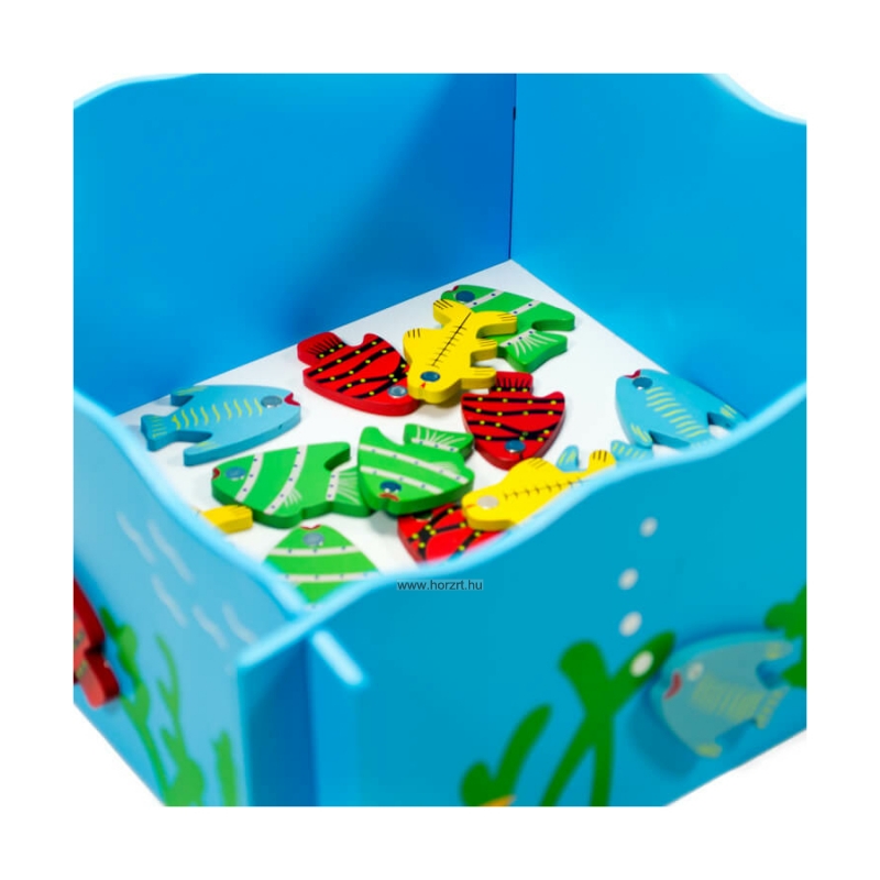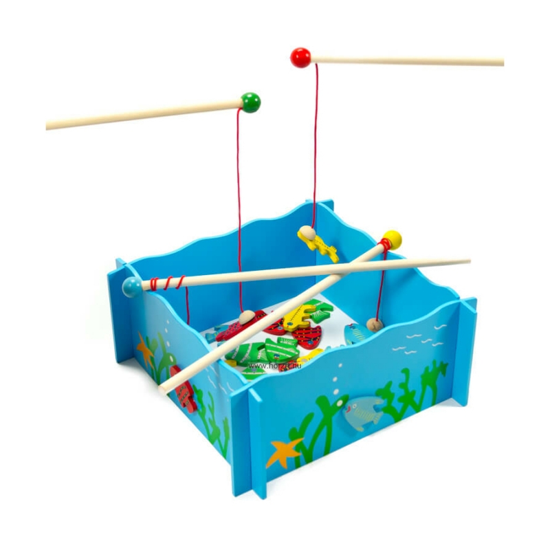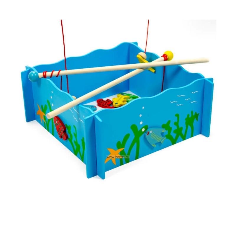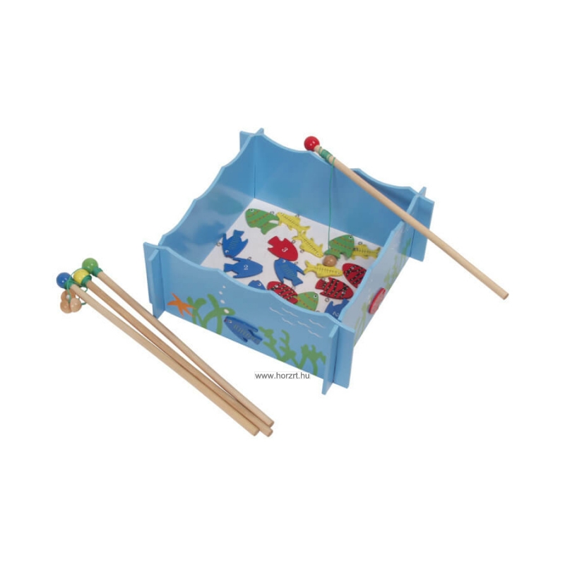 A csomag tartalma: 20 db fa halacska, 4 db horgászbot, 1 db medence