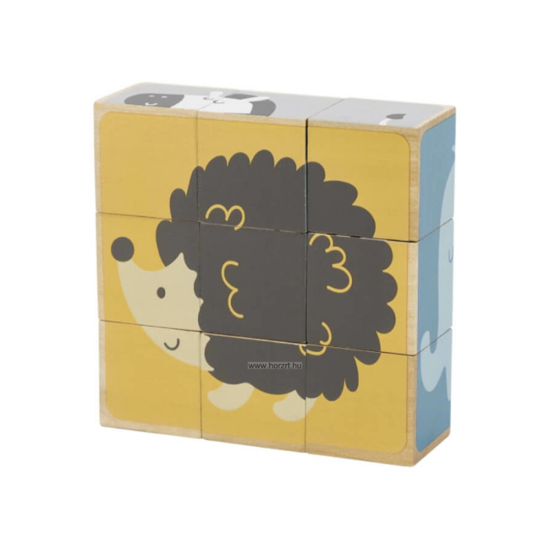 Az állatos mesekockákból 6 db kedves kis állatka, pasztell árnyalatokból álló képe rakható ki. A képek közt megtalálható a róka, a zebra, a koala, a jegesmedve, a süni és az elefánt.