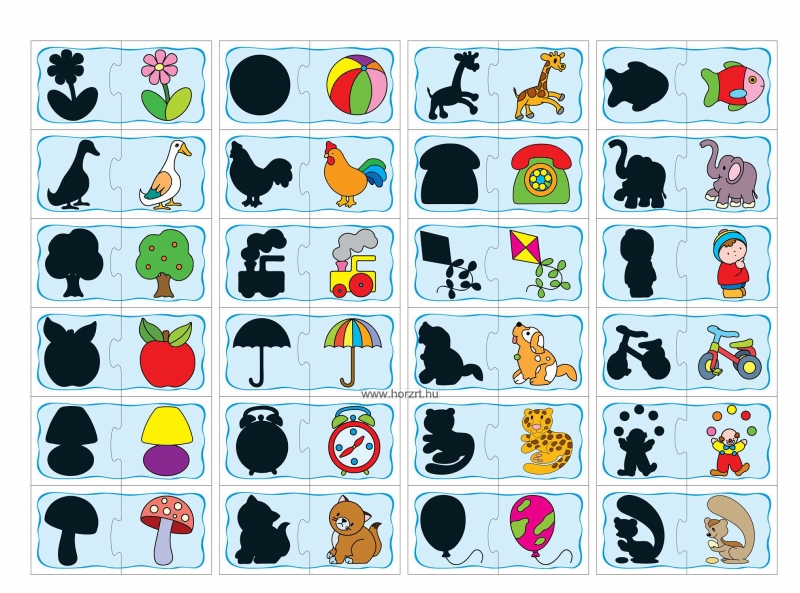 Párosítsuk össze az árnyképet a színes kép párjával. Ha helyesen raktuk össze, akkor a két kép pontosan illeszkedik egymáshoz!