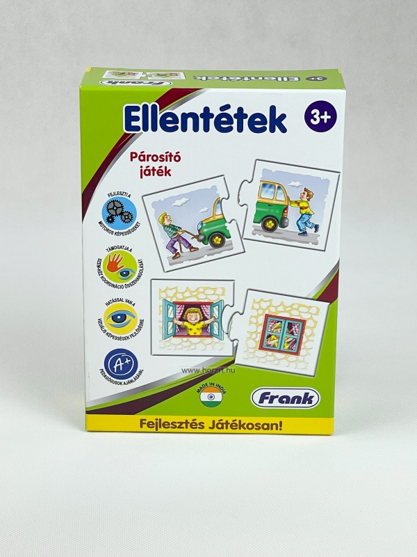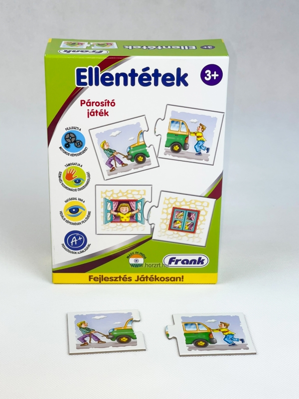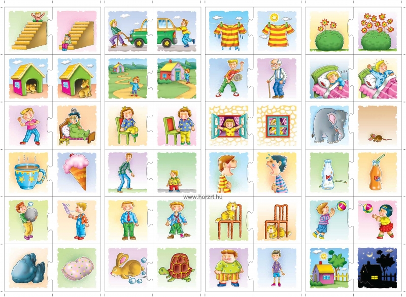 Ellentétes kifejezéseket megjelenítő képek összepárosítása. Ha a gyermek helyesen rakja össze a párokat, akkor a két kép pontosan illeszkedik egymáshoz, így a gyermek önmagát tudja ellenőrizni.