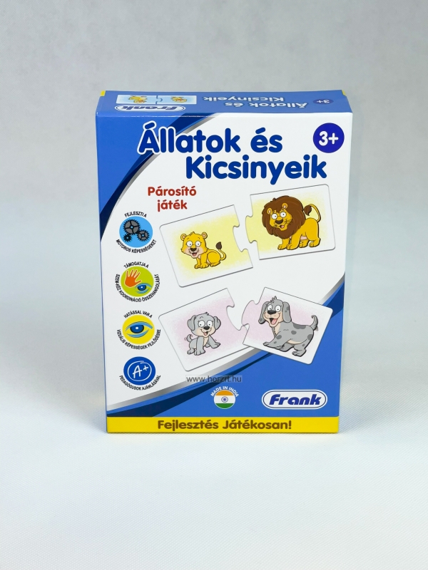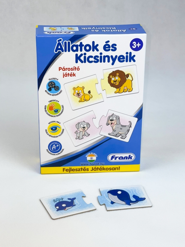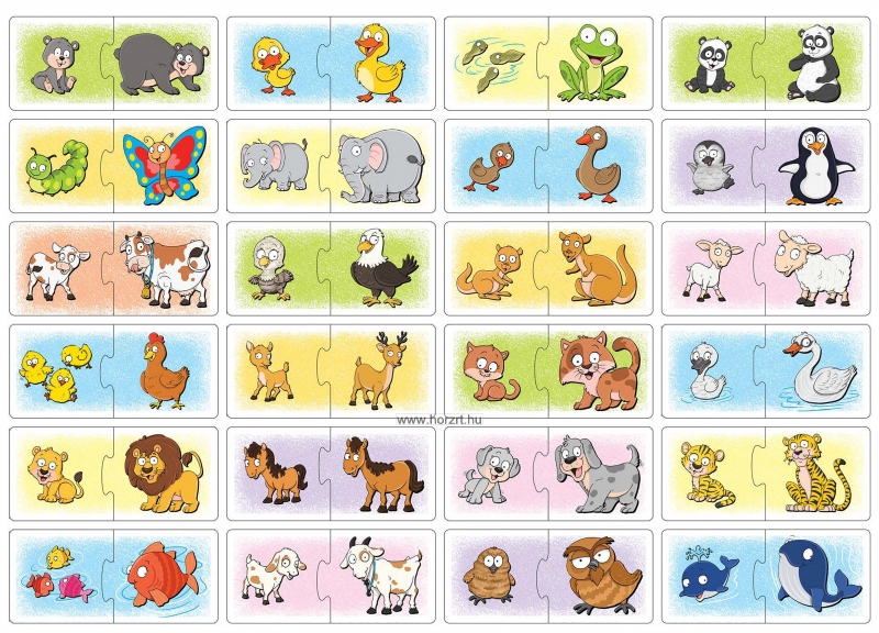 A kifejlett állatok összepárosítása kölykükkel. Ha a gyermek helyesen rakja össze a párokat, akkor a két kép pontosan illeszkedik egymáshoz, így a gyermek önmagát tudja ellenőrizni.