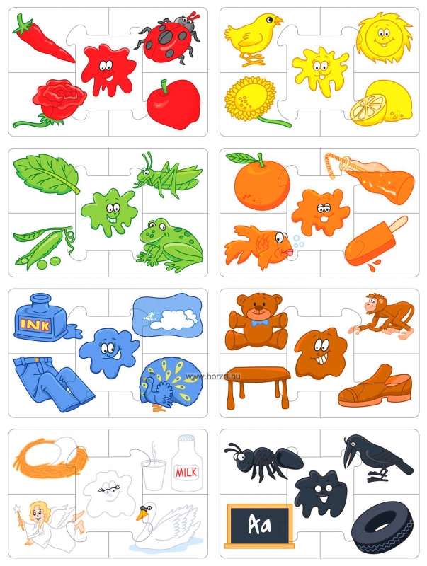 Ezzel a párosító játékkal könnyedén szemléltethetjük a színeket, illetve szókincsbővítésre is megfelelő.
