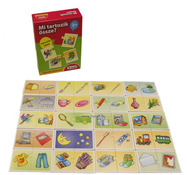 A mindennapi életben együtt megjelenő, összetartozó dolgok képének összepárosítása. Ha a gyermek helyesen rakja össze a párokat, akkor a két kép pontosan illeszkedik egymáshoz, így a gyermek önmagát tudja ellenőrizni.