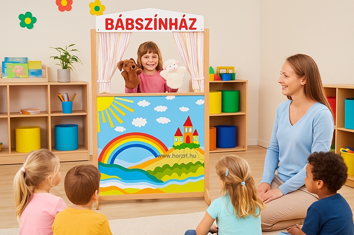 1. Képzelet fejlesztése: A bábozás során a gyerekek kitalálnak történeteket, szereplőket, konfliktusokat és megoldásokat. A bábparaván segíti a játékos elmélyülést és a történet vizuális elhatárolását. 2. Kommunikációs és nyelvi készségek fejlesztése: A gyerekek gyakorolják a beszédet, párbeszédeket, kiejtést, szókincset. 3. Szociális készségek: Csoportos játék esetén fejleszti az együttműködést, szerepmegosztást, konfliktuskezelést. 4. Szerepjáték támogatása: A gyerekek különböző szerepekbe bújhatnak, ami elősegíti az empátia és érzelmi intelligencia fejlődését. |