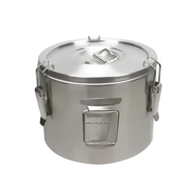 Rozsdamentes acélból készült duplafalú, ételtároló-, ételszállító badella.