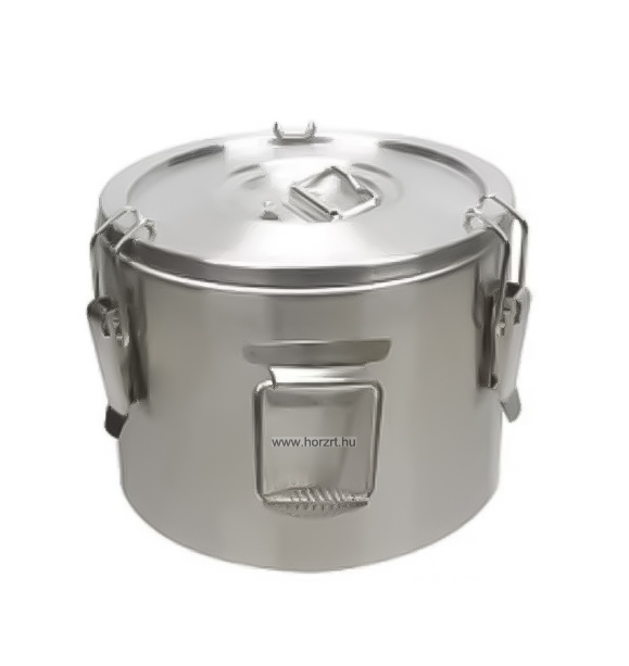 Rozsdamentes acélból készült duplafalú, ételtároló-, ételszállító badella.
