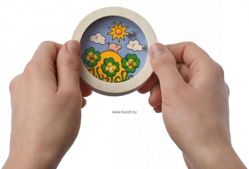 A játék célja a táblán lévő lyukakba belejuttatni a golyókat a játéktábla mozgatásával. Fejleszti a finom motorikus mozgást, a szem-kéz koordinációt, a kitartást és a türelmet.