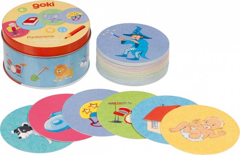 A Goki pantomime játéka 50 db kártyát tartalmaz, melyeken 1-1 kép látható.