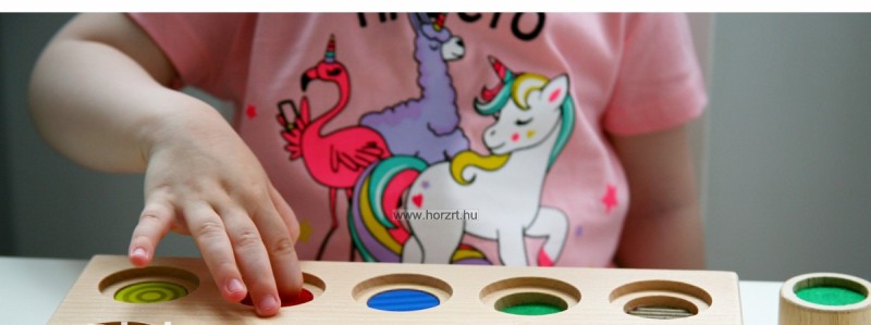 A játék 10 db különböző színű és tapintású fa korongot és 1 db fa alaptáblát tartalmaz. Az alaptáblán megtalálhatóak a korongoknak megfelelő tapintású minták.
