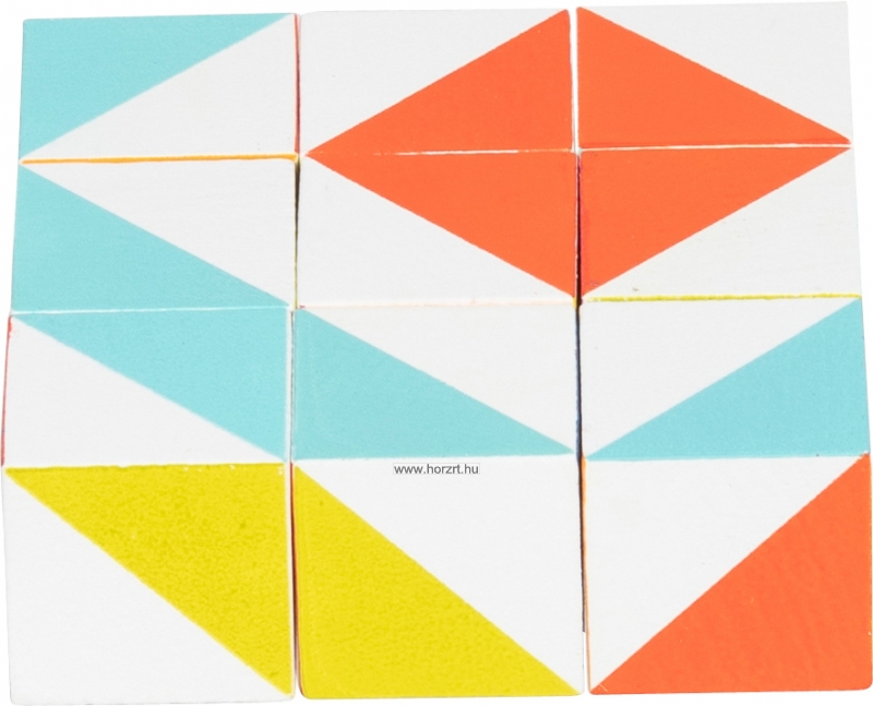 Szórakoztató és kreatív játék, amely segít a gyerekeknek fejleszteni a finommotorikájukat, a koncentrációjukat és a térbeli gondolkodásukat. A játék 16 darab fa kockát tartalmaz, melyek különböző geometriai mintákkal és élénk színekkel rendelkeznek, így rengeteg lehetőséget kínálnak a gyermekek számára a formák és képek összeállítására.