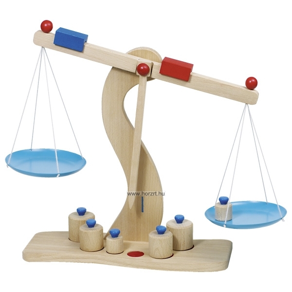 Tartalma: fa mérleg, 2 db serpenyő, 6 db súly,
