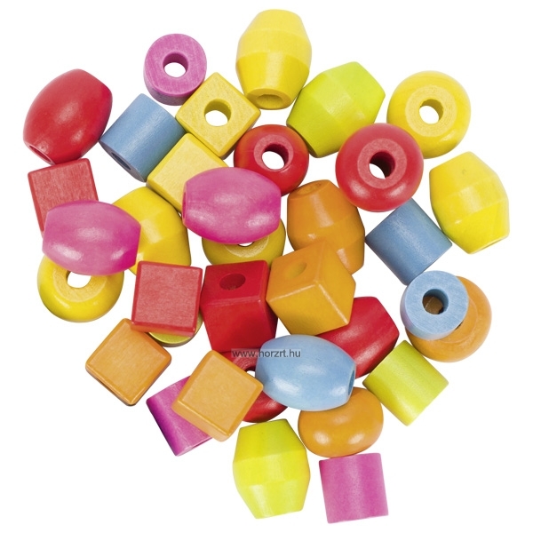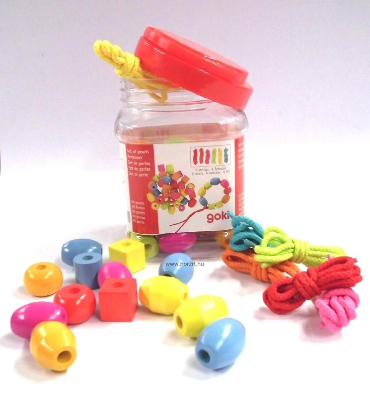 A legkisebbek is bátran játszhatnak ezekkel a színes fűzhető formákkal hiszen a nagy méretű gyöngyöket könnyen a kezükbe tudják fogni, a zsinórokat sem lesz nehéz átvezetni rajtuk, így alkotva különböző sorozatokat.