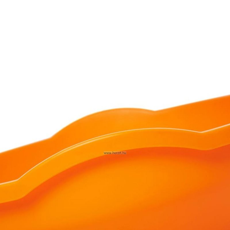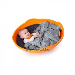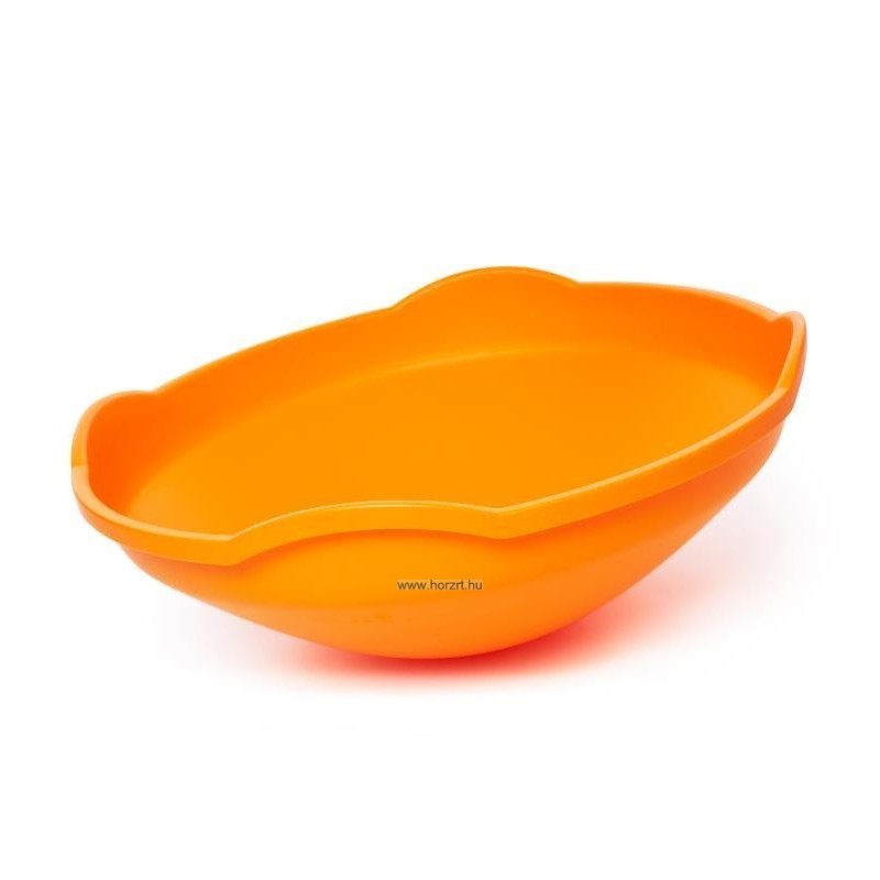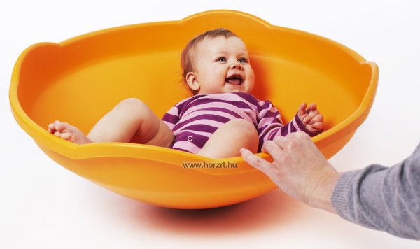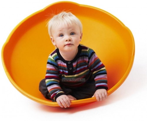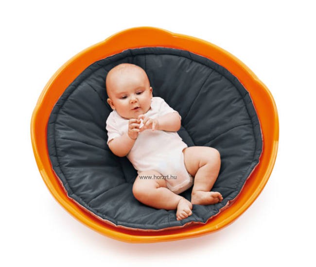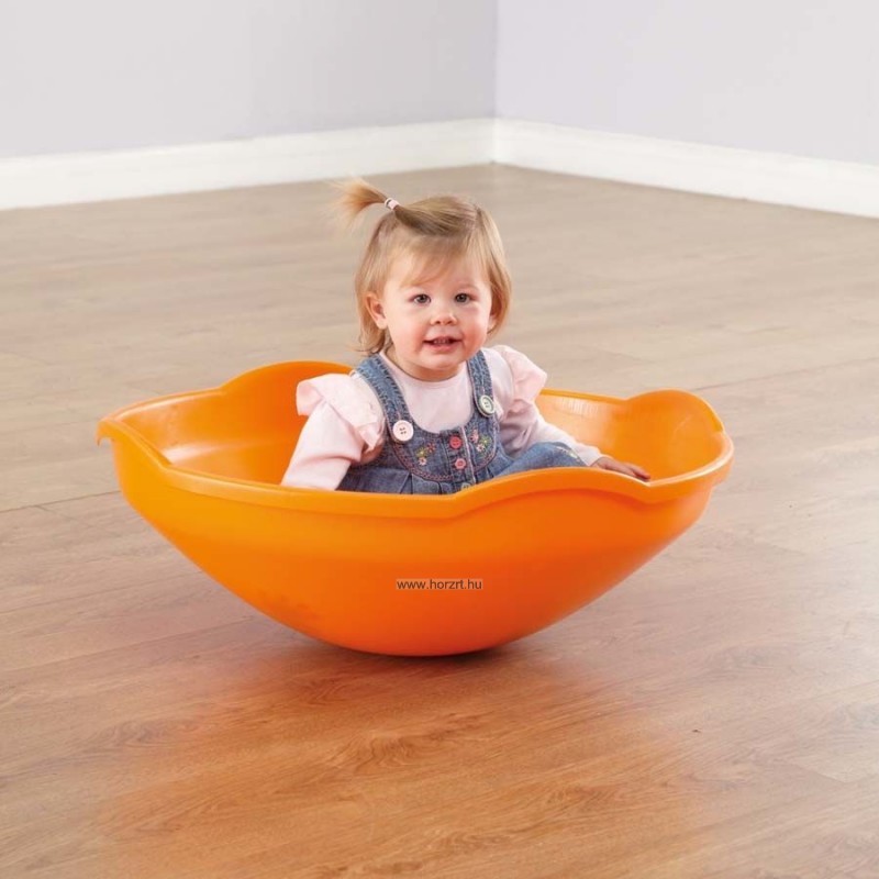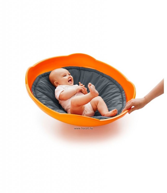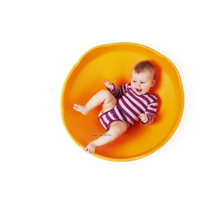 A narancssárga színű, műanyagból készült forgó anyagának köszönhetően kimondottan könnyen tisztítható, lekerekített szélei biztonságossá teszik a használatát. Félköríves kialakítása teszi lehetővé a ringatást és forgást, magasított oldalai védelmet nyújtanak.