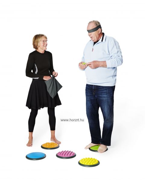 A Gonge érzékelő korong szettje szórakoztató módon képes fejleszteni a kicsik és a nagyok érzékelését, memóriáját, egyensúlyát és tapintását is.