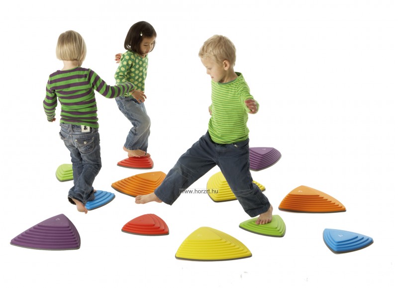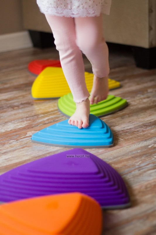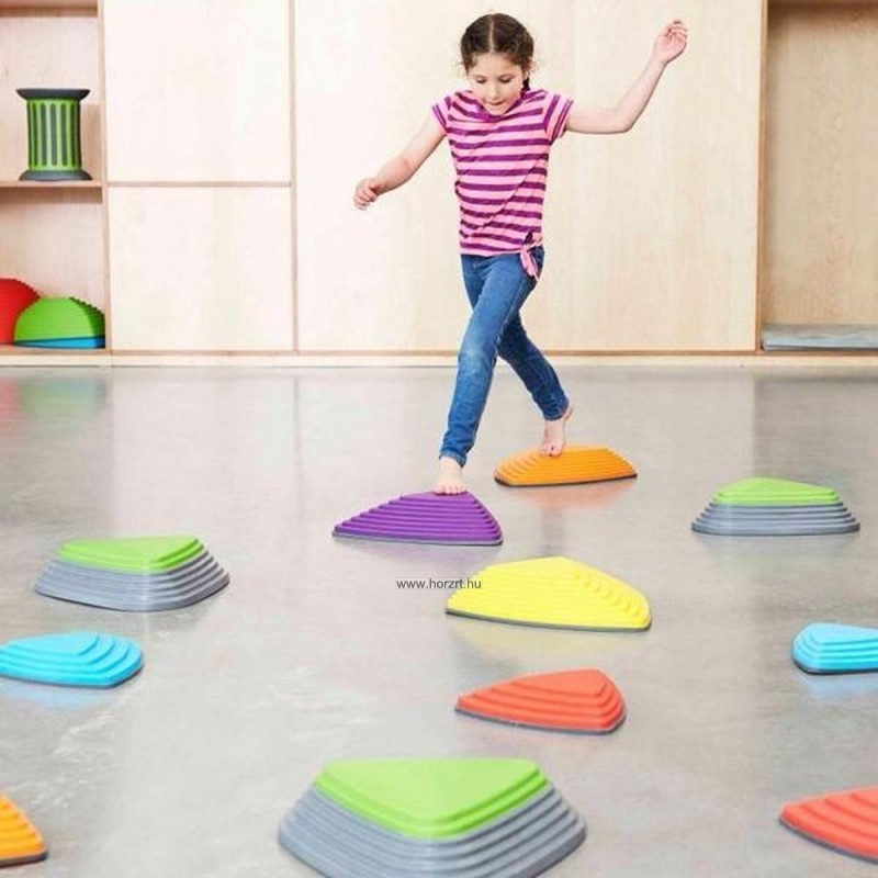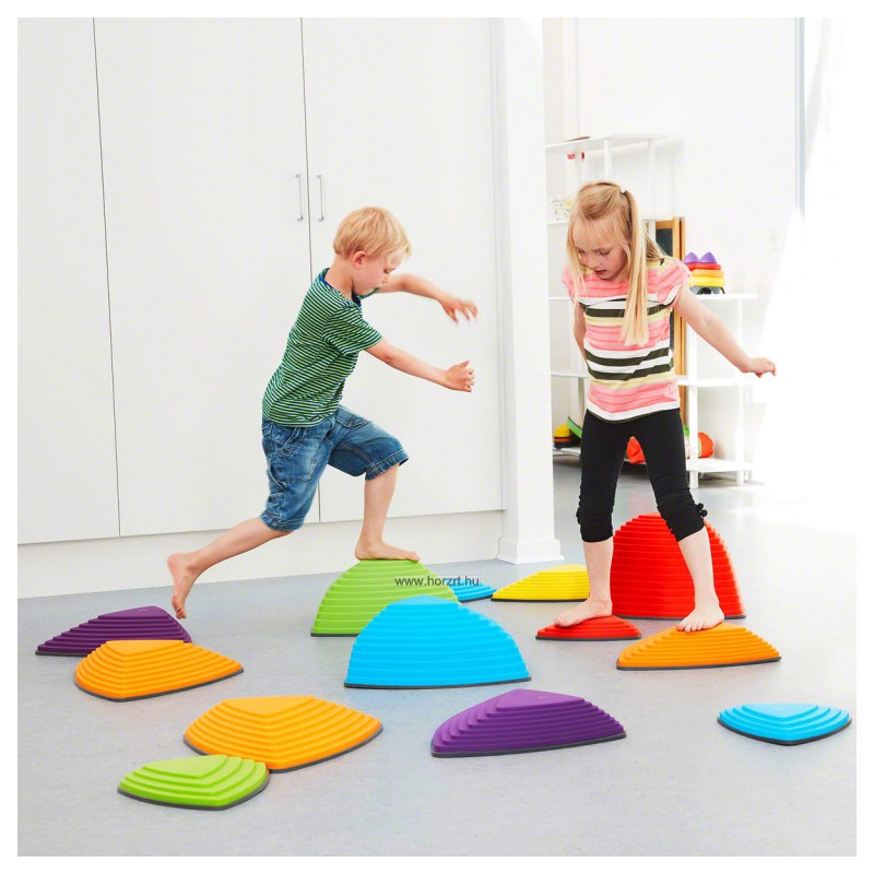 A Gonge érzékelő folyami kövek szettje szórakoztató módon képes fejleszteni a kicsik és a nagyok érzékelését, egyensúlyát és tapintását is.