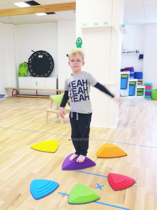 A megváltozott magassági és távolsági viszonyok miatt a gyermeknek a láb emelése és nyújtása folyamán is meg kell tartania az egyensúlyát.