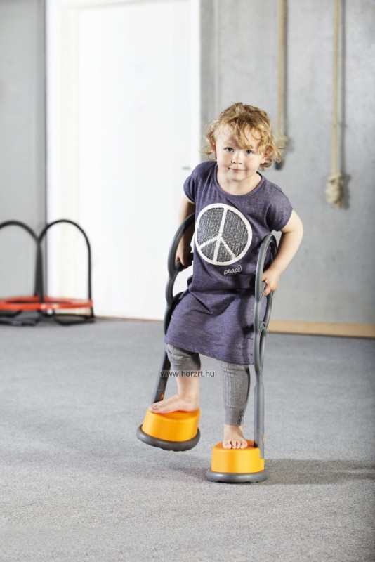 Egyedi gólyalábak, speciálisan a kisebb gyermekek számára kifejlesztve! A kemény műanyag fogantyú segítségével a gyermek biztonságos fogást találhat magának a magasságához mérten. A gólyaláb magasságát szabályozni lehet (3-15 cm között). A magasító korongokat egyszerűen lehet cserélni és eltávolítani!