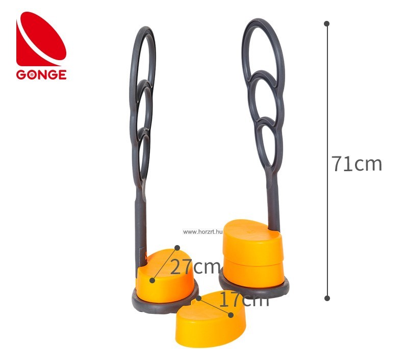 A Gonge kimondottan gyerekek számára megalkotott gólyalába állítható magasságú talppal és erős fogantyúkkal lett kialakítva.