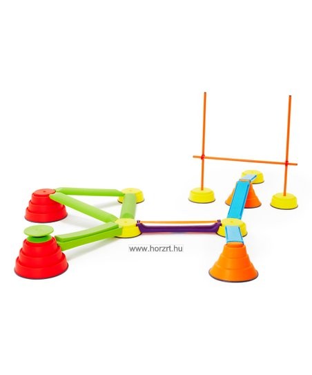 A flexibilitásnak köszönhetően a nehézségi fokot a gyerekeknek megfelelően variálhatjuk, a bátorságtól függően, az építmény magassága 10 és 24 cm között lehetséges.