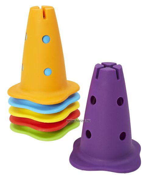 A GONGE család egyedi, minőségi és vidám bójái kiváló kiegészítői lesznek bármelyik mozgásfejlesztő készletnek. A bójákon 25 mm-es átmérőjű lyukak találhatóak, amelyekbe rudak illeszthetőek. A felső részén karikák és rudak elhelyezésére is van lehetőség. A szett 6 db különböző színű bóját tartalmaz.
