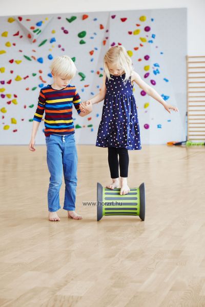 Az eszközt helyezzük sík padlóra, majd egy kis támogatással segítsünk a gyereknek mezítláb ráállni. Ezután indulhat is a móka. A nagyobb gyerekek akár segítség nélkül is próbára tehetik az ügyességüket. A kerék homokot tartalmaz, amely a forgást lassítja, ezáltal biztonságosabb érzetet biztosít. A felületen és a végeken csúszás mentes gumírozás található! ÖNNEK AJÁNLJUK