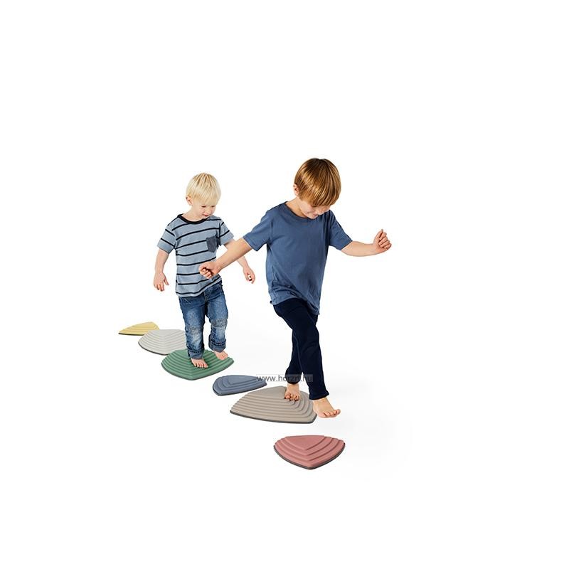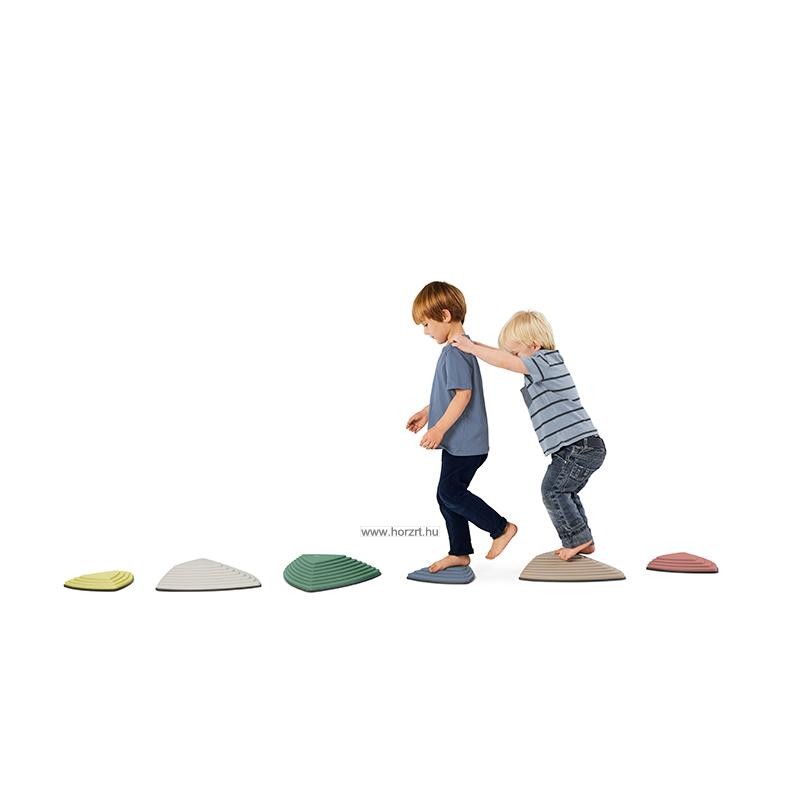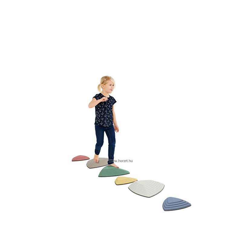 A Gonge érzékelő folyami kövek szettje pasztell színben, szórakoztató módon képes fejleszteni a kicsik és a nagyok érzékelését, egyensúlyát és tapintását is.