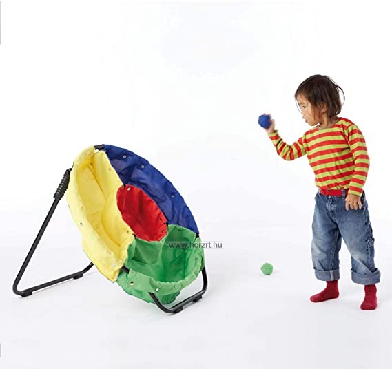A Gonge célbadobó játéka 4 db textil rekeszből áll, amelyek egy strapabíró fém kerethez vannak rögzítve.