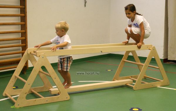 Vigyázat, ez keskenyebb elem, mint a többi RillaGym termék. Érdemes alacsonyabbra tenni. Ha bizonytalan a gyermek, használhatjuk segítségképpen az RillaGym korlátot, abátrabbak enélkül is kipróbálhatják.