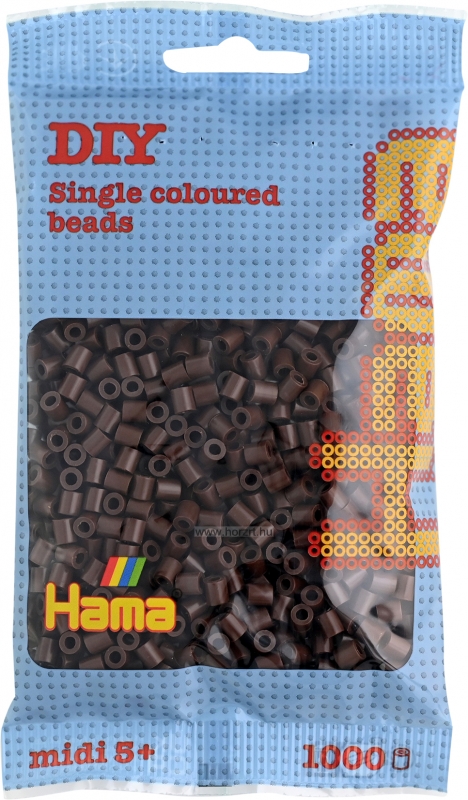 1000 darabos barna színű vasalható gyöngy. Más színekkel kombinálva alkothatunk vele kedves állat- vagy emberfigurákat, poháralátéteket, vagy akár ajándéktárgyakat. Segítségképpen használhatunk Hama ötletfüzetet is, de hagyatkozhatunk akár a fantáziánkra is.