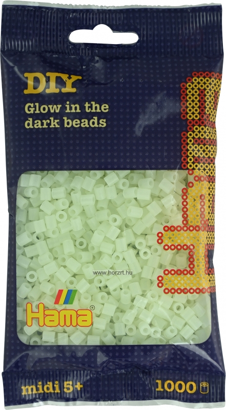 1000 darabos Világítós zöld színű vasalható gyöngy. Igazán varázslatos hangulatot tud teremteni a szobában esti lámpaoltás után. Más színekkel kombinálva alkothatunk vele kedves állat- vagy emberfigurákat, poháralátéteket, vagy akár ajándéktárgyakat. Segítségképpen használhatunk Hama ötletfüzetet is, de hagyatkozhatunk akár a fantáziánkra is.