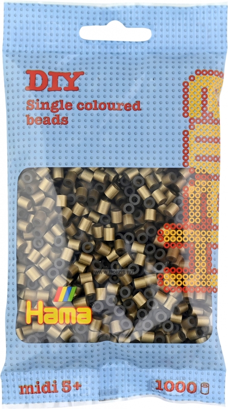 1000 darabos bronz színű vasalható gyöngy. Más színekkel kombinálva alkothatunk vele kedves állat- vagy emberfigurákat, poháralátéteket, vagy akár ajándéktárgyakat. Segítségképpen használhatunk Hama ötletfüzetet is, de hagyatkozhatunk akár a fantáziánkra is.