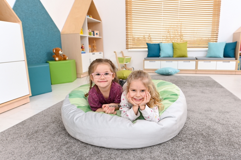 Szilikon szemcsékkel töltött, textil borítású padlópárna, lehúzható, mosható huzattal. Méretének köszönhetően a kicsik biztonságosan ülhetnek, fekhetnek vagy akár játszhatnak a párnán. Pompás színes kiegészítője lehet a gyerek-, vagy csoportszobáknak.