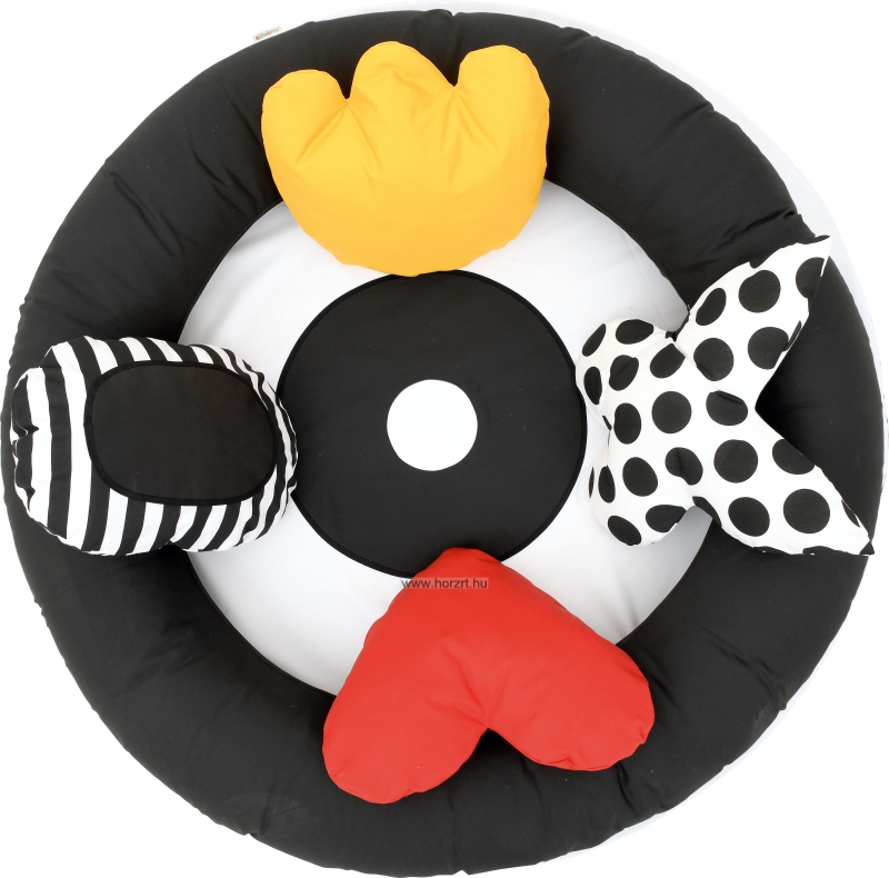 A kontrasztok vonzzák a tekintetet és a legkisebbek esetében fejlesztő hatással van a látásra. Ezt erősíti a közepén található plexitükör is, ami további érdekesség lehet a kicsik számára.
