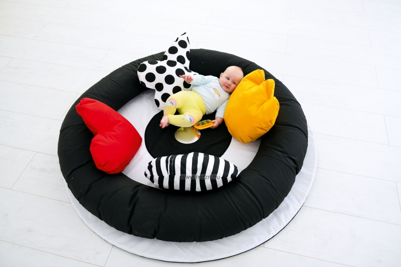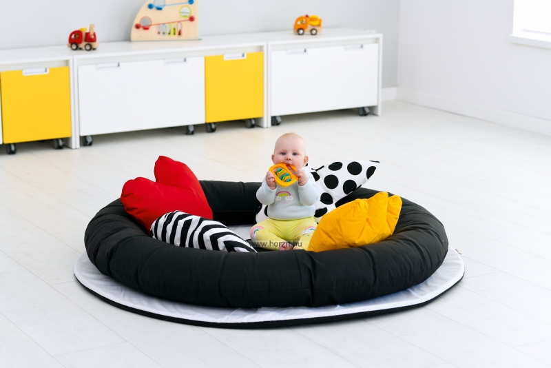 Puhasarok - Fekete-fehér szőnyeg, párnákkal 6 hó+