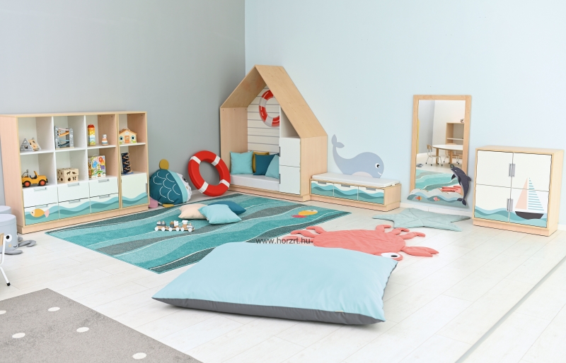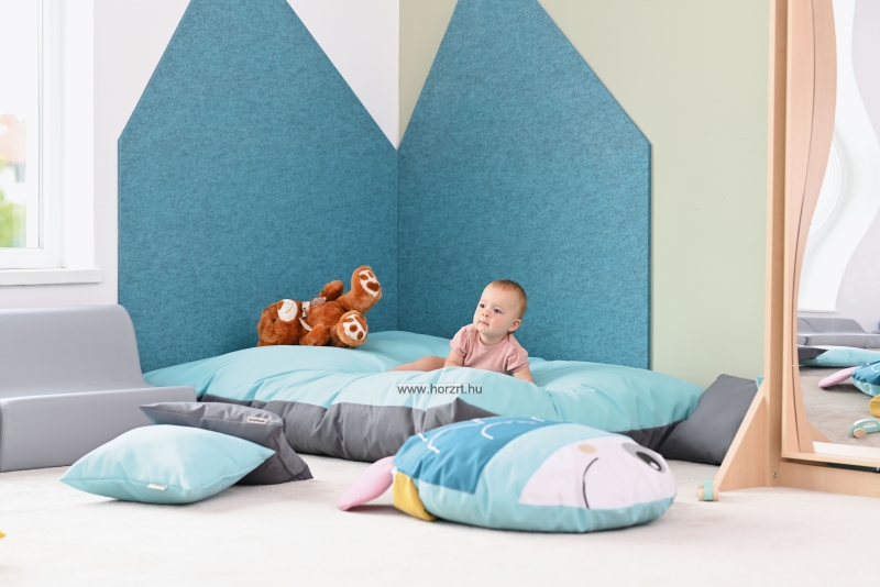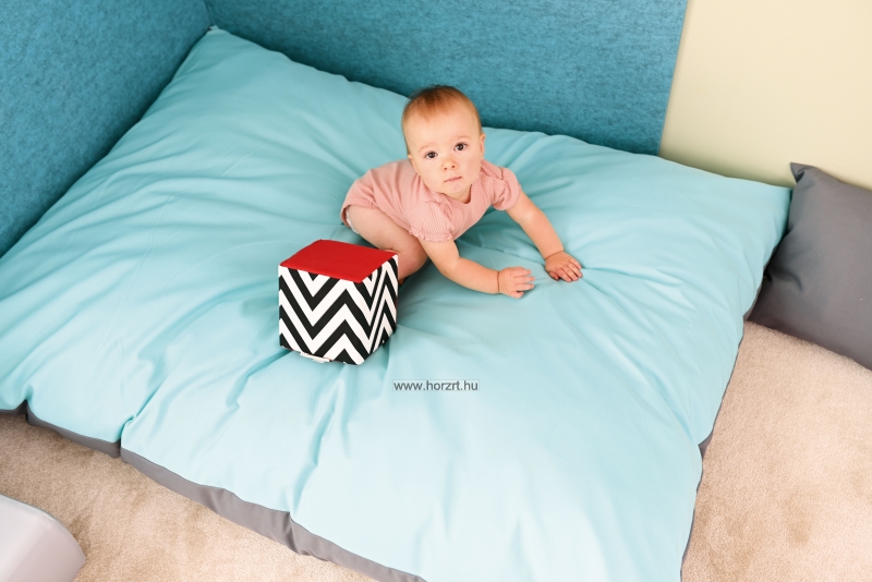 Az óriási méretű, négyzet alakú puhasarok párna méretének köszönhetően kiemelkedő eleme lehet a csoport- és gyerekszobáknak egyaránt.