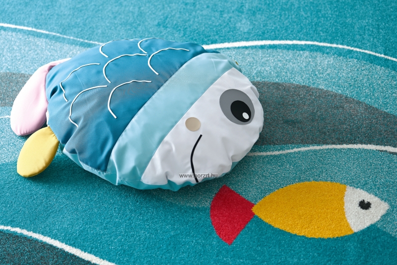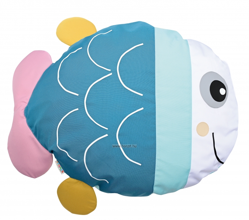A halacska formájú padlópárna többféle élénk színből áll össze. Belső töltete habszivacs, külső huzata textil. A huzat lehúzható és mosható.