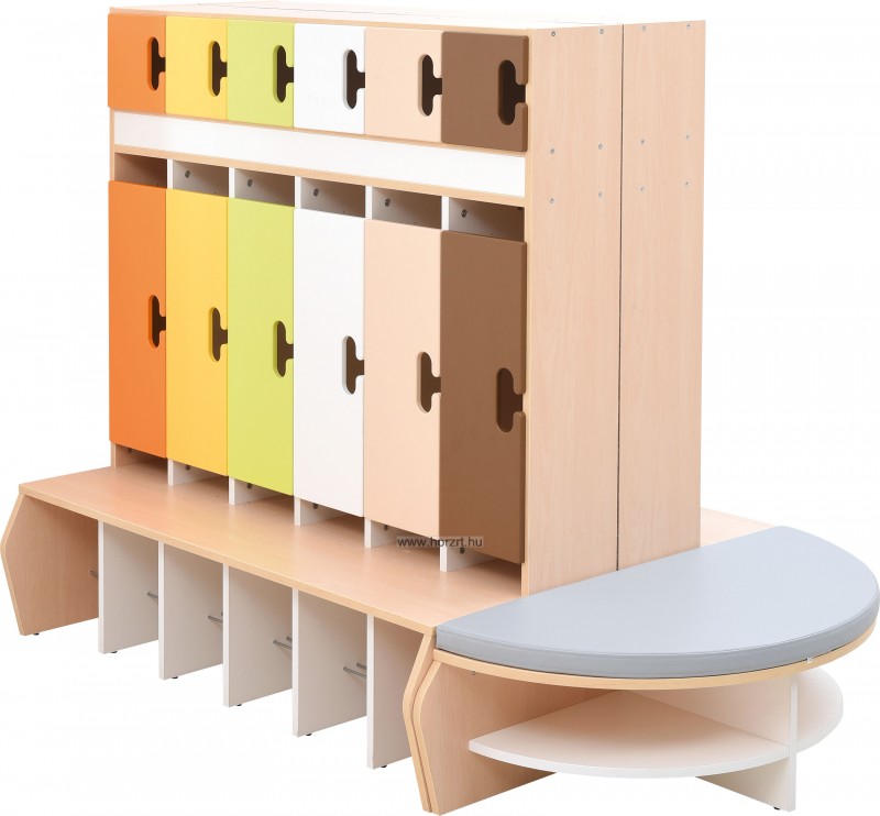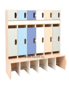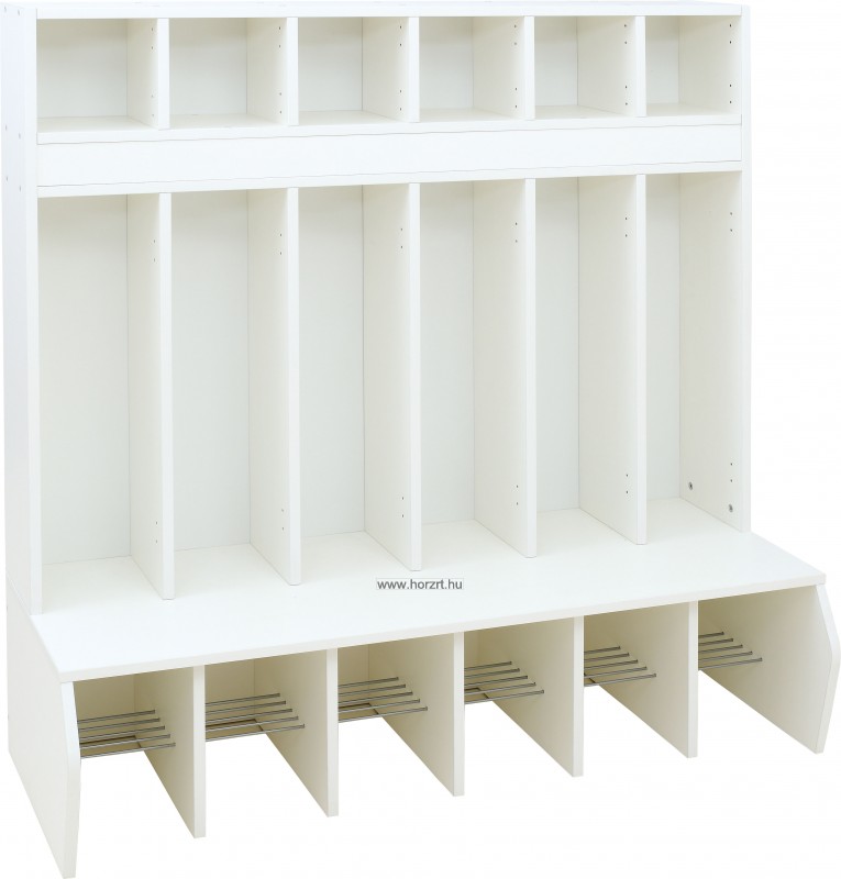 Az öltözőszekrény juhar árnyalatú natúr és fehér laminált bútorlapból készült. A fém kampókat a termék tartalmazza.