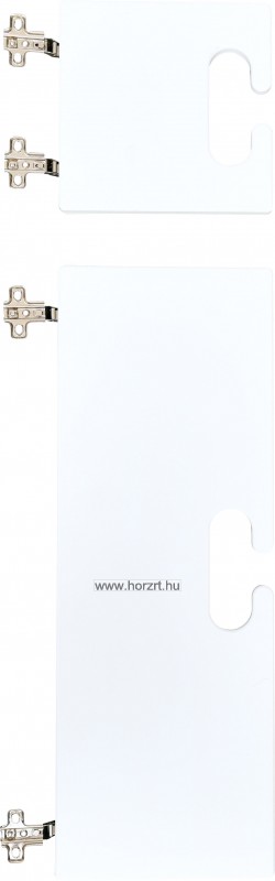 Ajtószett Bambi gyereköltözőhöz. Az ajtószett 2 db, fehér ajtót tartalmaz. Az ajtók 2-2 strapabíró kivetőpánttal csatlakoznak a szekrényhez. Külön fogantyúja nincsen, szépen megmunkált ovális kivágások segítik a kinyitást, illetve biztosítják a szekrény, így a benne lévő ruhák szellőzését is. Az ajtók anyaga színes MDF bútorlap. A felső, kisebb ajtó mérete: 20x20 cm. Az alsó, nagyobb ajtóé: 20x57,5 cm.